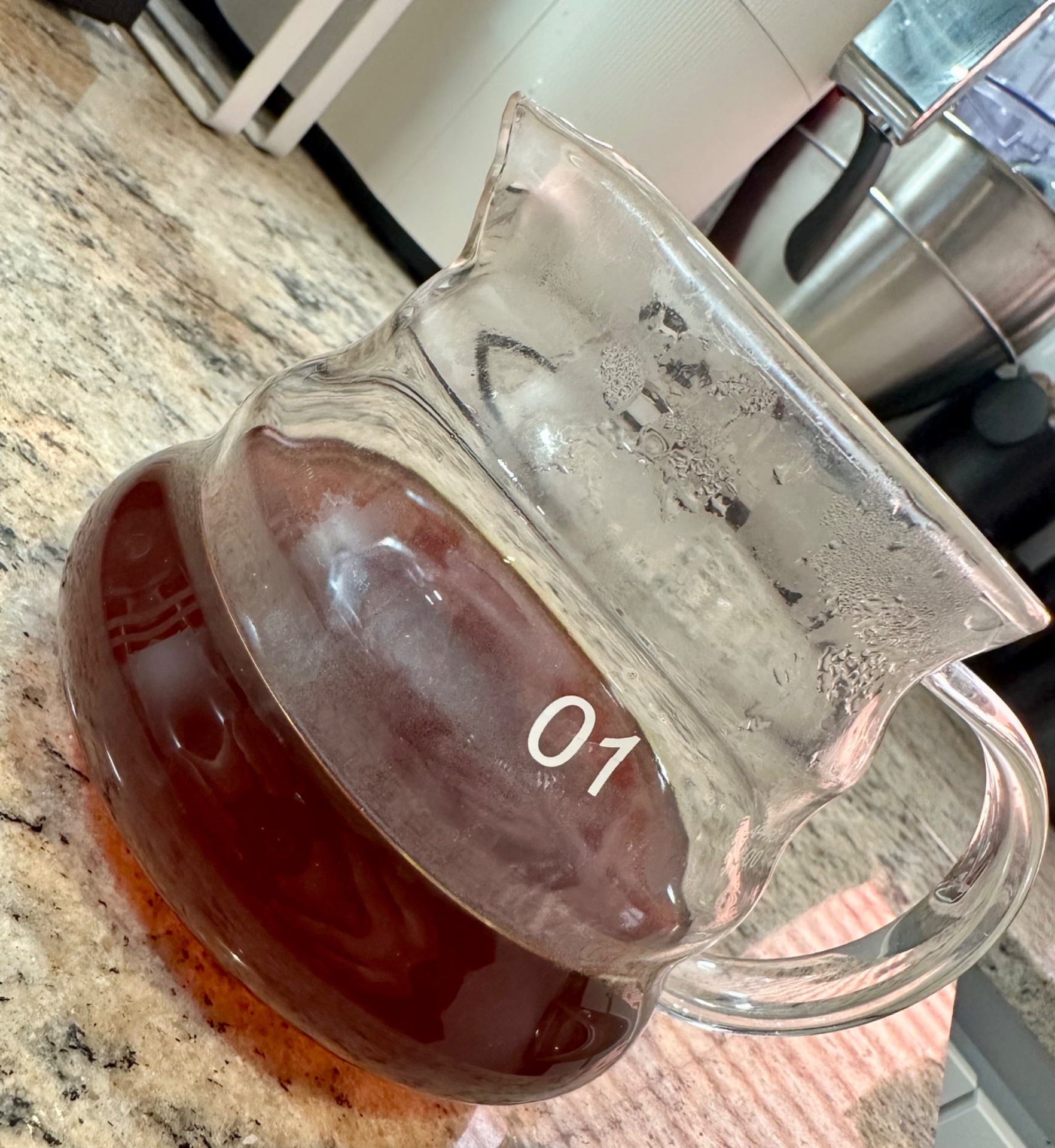 Wenn ich in der Zubereitung auf den Switch wechsle und beim Blooming diesen geschlossen lasse, verlängert sich damit die Brühdauer um ca. 30 Sekunden und der Kaffee bekommt ein wenig mehr Körper. Auf Raumtemperatur kommt dann auch ein bisschen Säure durch, es wird aber auch trockener im Nachgang.