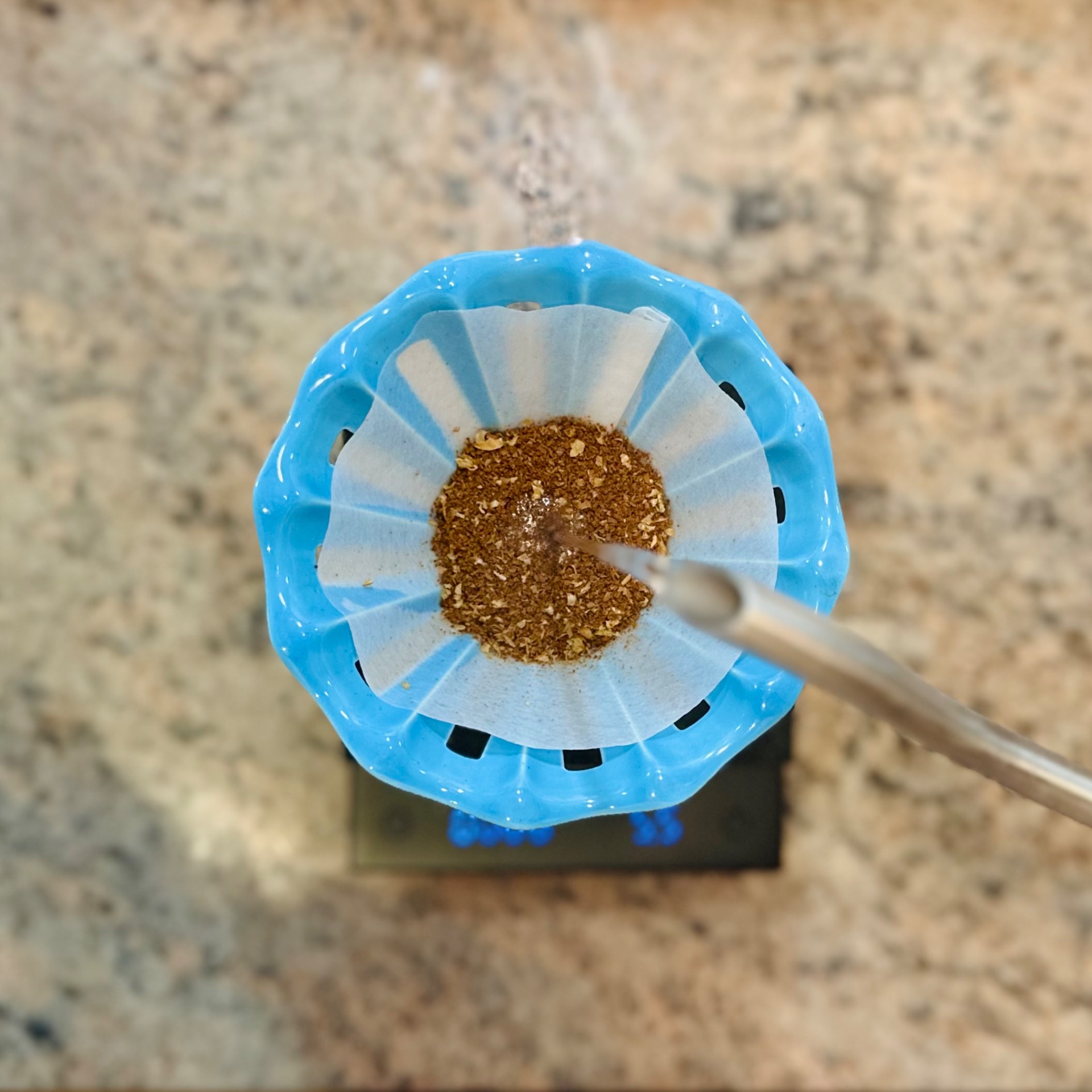 Die Bohnen selber sind sehr gleichmäßig geröstet und haben ein wunderbares Bild; kein Bruch, keine Stückchen, sehr sauber. Im V60 lief mir der Kaffee ein Stück zu schnell, daher wechselte ich auf den Dotyk.
