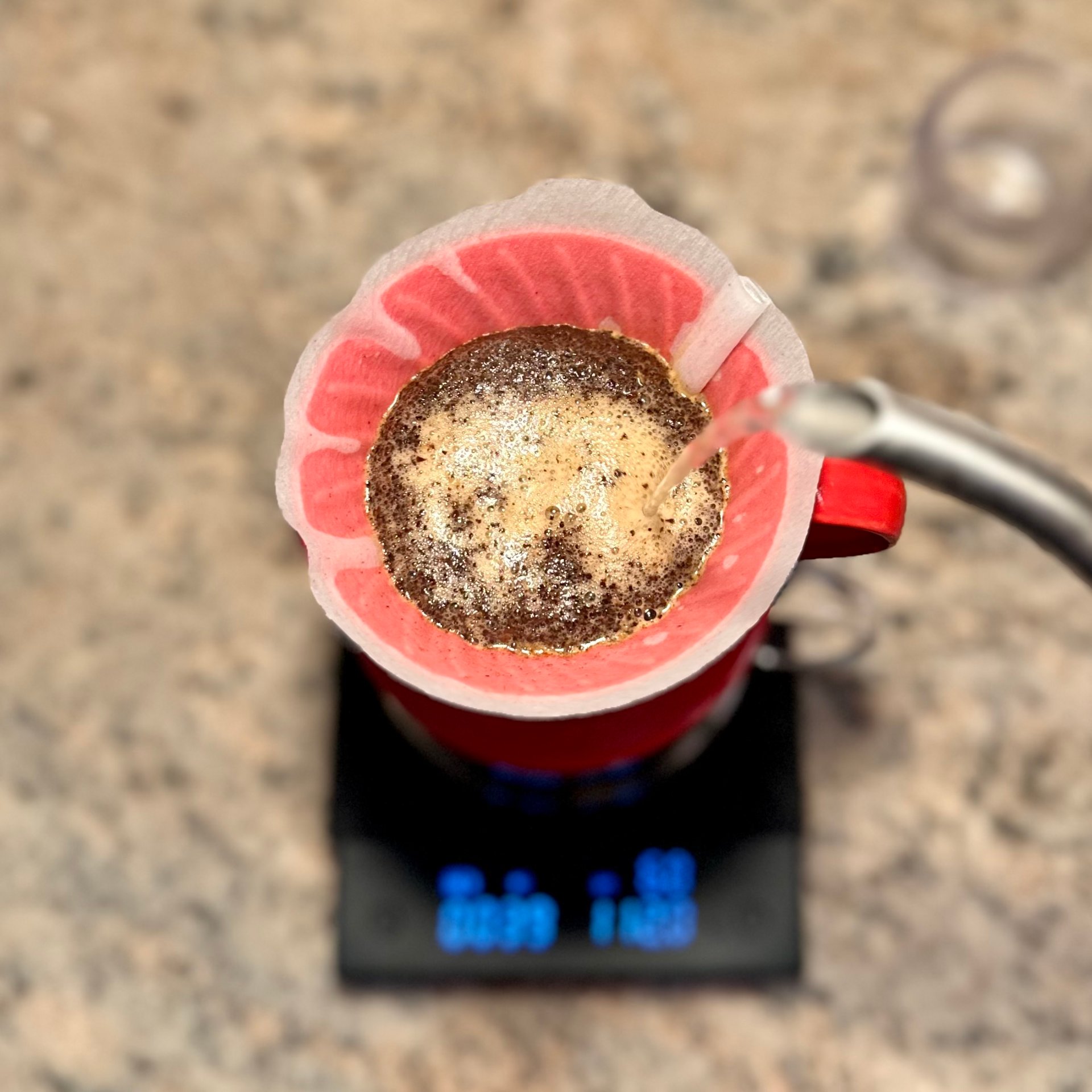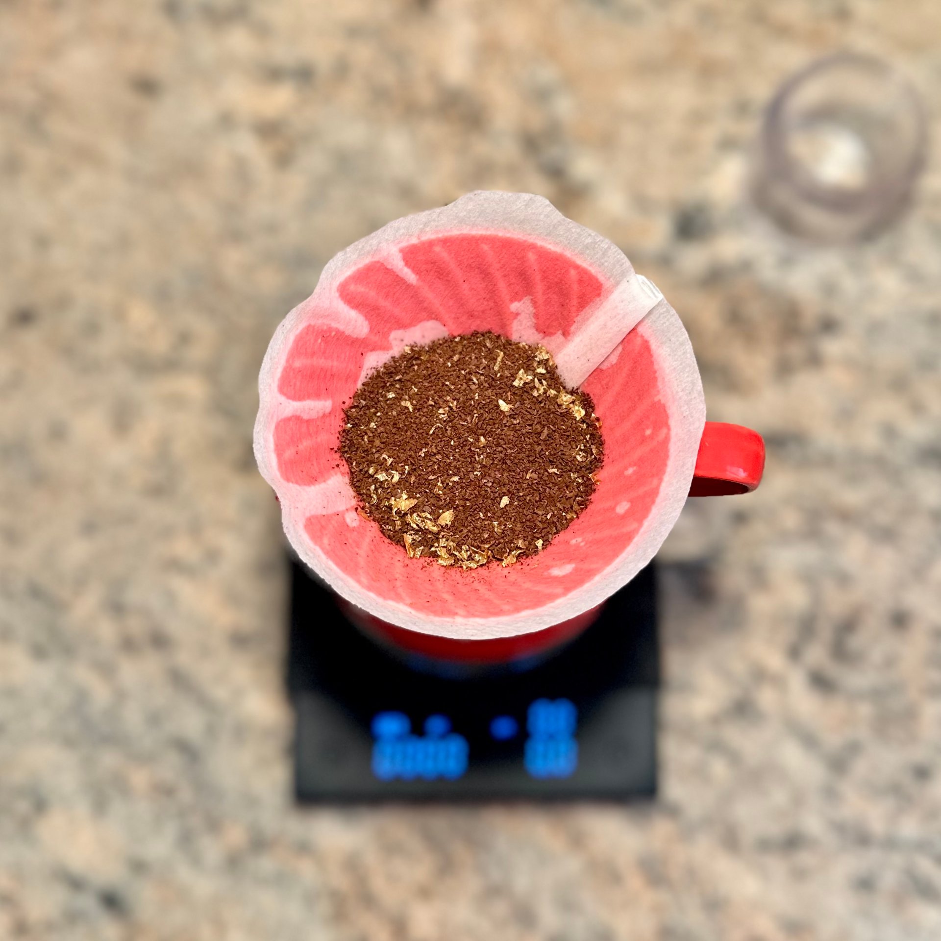 | Zubereitung | Blooming mit 50g Wasser, bei 30 Sekunden +100g Wasser, bei 1:15 +100g Wasser |