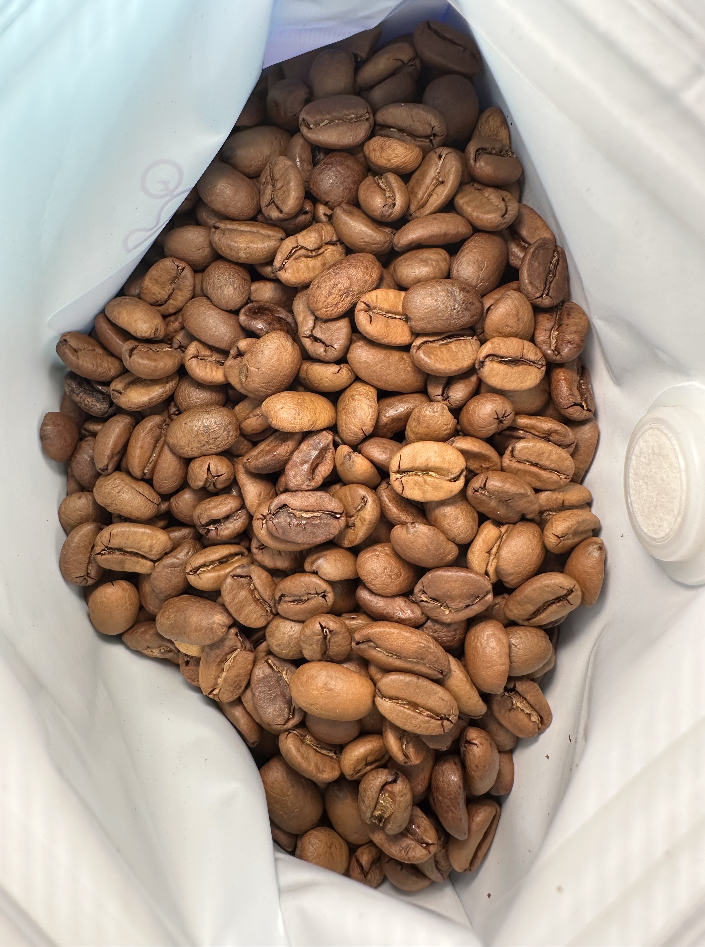 Die Bohnen sehen schon mal gut aus. Sie sind stellenweise unregelmäßig geröstet, das kann aber spannend werden. Mein erster Versuch ist bei 25 Clix mit dem Dotyk (2:30 Minuten), hier kommt ein… interessantes… Ergebnis bei raus: Es schmeckt wirklich nach Kamille und erinnert entfernt an eine Klassenreise (grusel). Die Mango ist kein Stück vorhanden, dafür gibt es ein sehr unangenehmes, adstringentes Gefühl im Rachen.