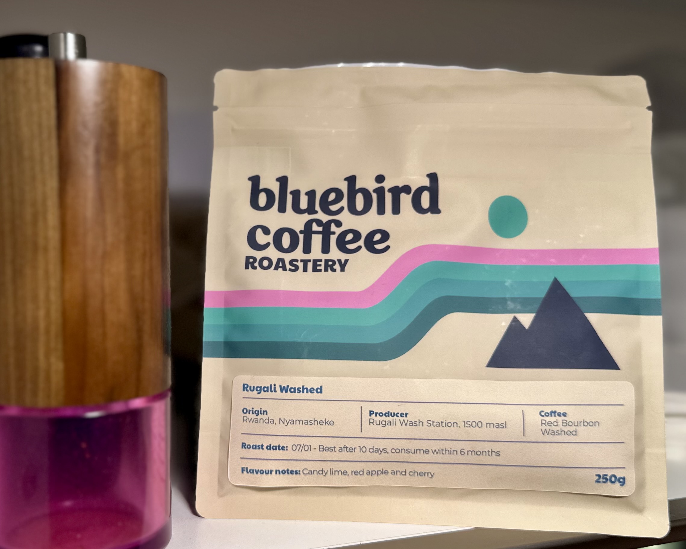 Bluebird kenne ich bereits und ich halte sehr viel von den Südafrikanern. Dieses Mal präsentieren sie einen simplen gewaschenen Kaffee aus Ruanda. Die Qualität der Bohnen ist hoch, die Röstung gleichmäßig und Fehler oder Defekte sehe ich keine.