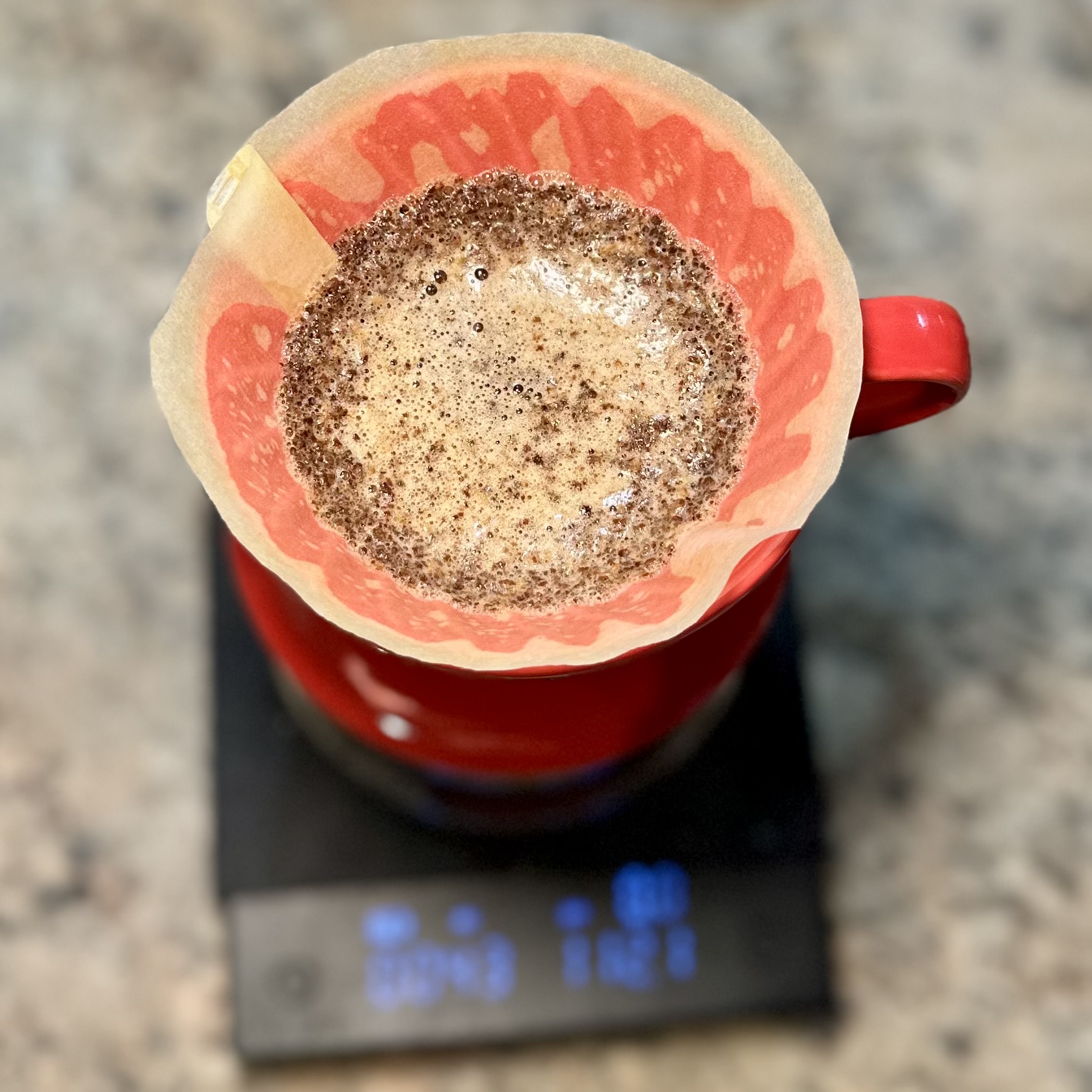 Die Brühung läuft ebenfalls klassisch, mit einem V60 und ohne Firlefanz binnen 2:30 Minuten.