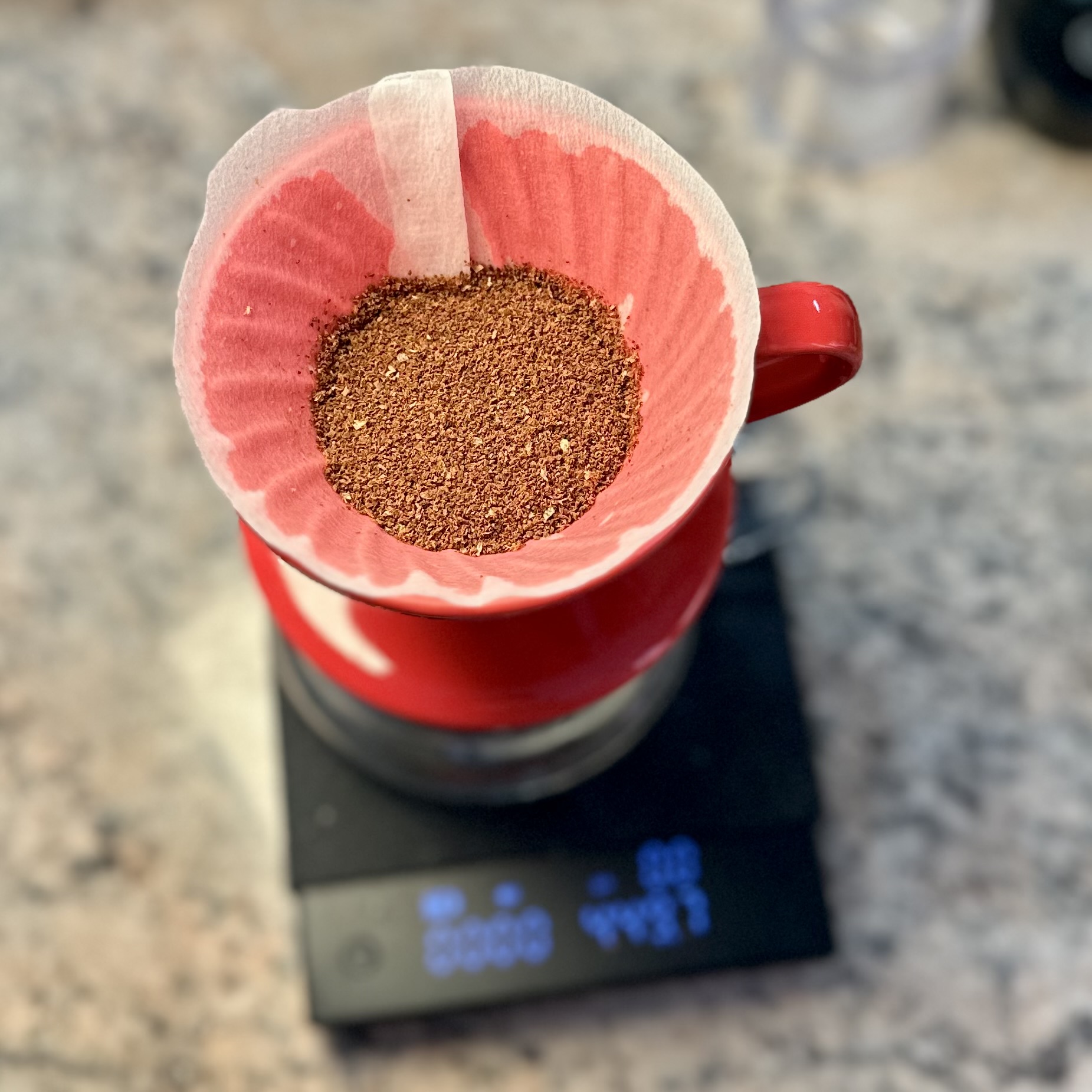 Also direkt gebrüht, mit meinem Standard Rezept und dem V60, mein Origami ging mir just vor ein paar Tagen kaputt. Ich nutze meine 1x Bloom, 3x Aufgießen Methode ein, so bin ich nach ca. 2:20 Minuten fertig.